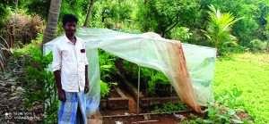 “தேசிய வாழை ஆராய்ச்சி மையத்தில் தான் நான் கேலாவிருத்தி பயிற்சி பெற்றேன். நோய் தாக்கம் இல்லாதவாறு நன்கு சுத்தம் செய்யப்பட்ட, சிறந்த வாழை முளை குருத்தை தேர்வு செய்து கொள்ள வேண்டும். பாலீதின் பைகளை கம்பிகளின் உதவியுடன் குடில் போன்று 6 அடி உயரத்திற்கு அமைக்க வேண்டும். இக்குடில் நிழலில் தான் இருக்க வேண்டும்.