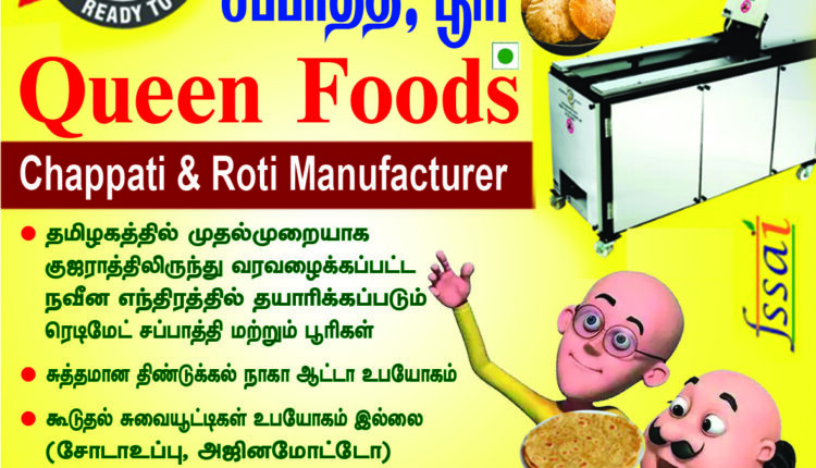 இந்திய பாதுகாப்பு துறையில் பணியாற்றி ஓய்வு பெற்ற துரை மாணிக்கம் என்பவர். திருச்சி துப்பாக்கி தொழிற்சாலை IT PARK அருகில் அண்ணா நகரில் Queen Foods என்ற பெயரில் உடனடி சப்பாத்தி, ரொட்டி தயாரிப்பு நிறுவனம் செயல்படுகிறது. இதுகுறித்து உரிமையாளர் துரைமாணிக்கம் கூறும் போது: