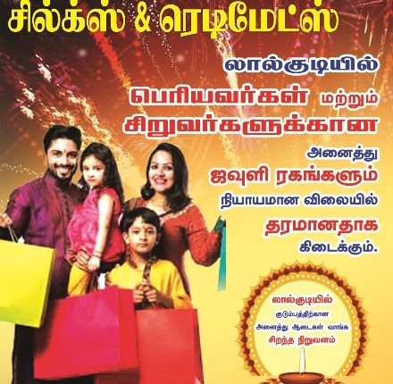 லால்குடி மம்மி டாடி சில்க்ஸ் & ரெடிமேட்ஸ் விளம்பரம் Last updated Nov 27, 2020 Share அடகு - ஏல நகையை மீட்டு மறு அடகு வைக்க - விற்கலால்குடியில் பெரியவர்கள் மற்றும் சிறுவர்களுக்கான அனைத்து ஜவுளி ரகங்களும் நியாயமான விலையில் தரமானதாக வாங்க மம்மி டாடி பிசினஸ் டிவி செய்திகள் உடனுக்குடன் தெரிந்து கொள்ள சில்க்ஸ் மற்றும் ரெடிமேட்ஸ் தம்பாச்சியாபிள்ளை திருமண மண்டபம், மெயின்ரோடு, லால்குடி. அங்குசம் இதழ் - இலவசமாக படிக்க - lalgudi-mommy-daddy-silks-readymadesசில்க்ஸ் & ரெடிமேட்ஸ்லால்குடி மம்மி டாடி Share