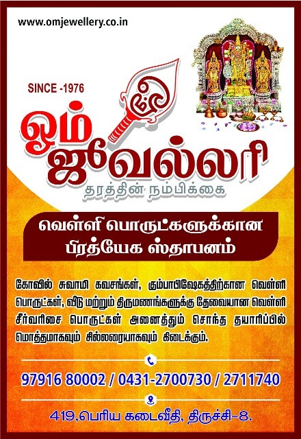திருச்சியிலேயே பிறந்து வளர்ந்த பெண்களில் 90 சதவீதத்தினர் வெள்ளி பொருட்களை வாங்க ஓம் ஜூவல்லரிக்கு சென்று வந்திருப்பார்கள். அந்த அளவிற்கு பிரசித்திப் பெற்ற இந்த வெள்ளி நகை கடையில் அப்படி என்ன சிறப்பு என்று கேட்டால் அது மாறாத தரம், ஏராளமான ரகங்கள் மற்றும் விற்பனைக்கு பின் உள்ள சேவைகள்.