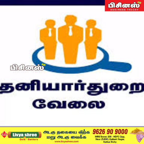 திருச்சிராப்பள்ளி மாவட்டத்திலுள்ள வேலைநாடுநர்களை தனியார் துறைகளில் பணியமர்த்தம் செய்யும் நோக்கத்தோடு, திருச்சிராப்பள்ளி மாவட்ட வேலைவாய்ப்பு மற்றும் தொழில்நெறி வழிகாட்டும் மையத்தால் சிறிய அளவிலான தனியார்துறை வேலைவாய்ப்பு முகாம் நடத்தப்படவுள்ளது.